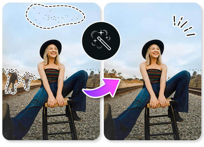 Remove Unwanted Object es una aplicación diseñada específicamente para eliminar objetos no deseados de las fotos. Utiliza tecnología inteligente para rellenar automáticamente el área vacía con el fondo adecuado, lo que hace que el proceso sea rápido y eficiente.