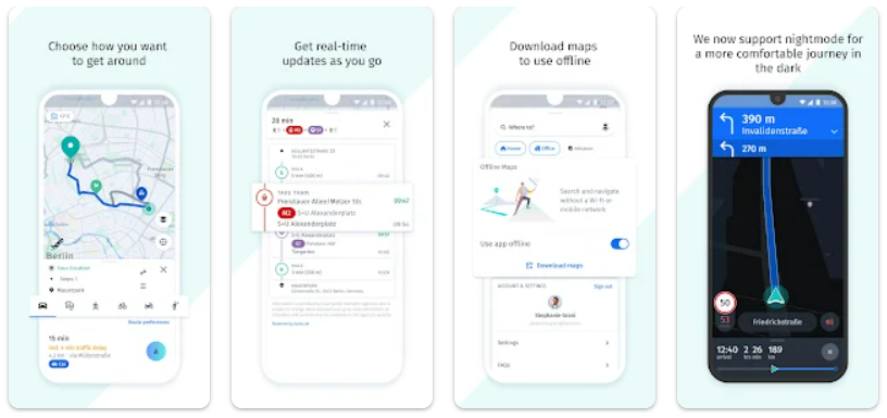¿Necesitas una app que funcione sin conexión a Internet? Here WeGo es la solución. Esta aplicación te permite descargar mapas completos para usarlos offline, asegurándote que no te perderás, incluso sin datos móviles. Ofrece rutas para varios medios de transporte, incluyendo transporte público, bicicleta y a pie. Here WeGo es versátil y práctica, perfecta para cualquier necesidad de navegación.